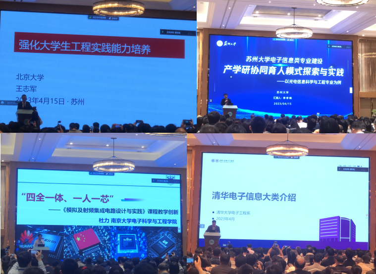 本网讯(通讯员 曹新莉)2023年4月14日至16日,第六届全国高校电子信息类专业教学论坛在苏州大学召开。电子信息教指委副主任王志军、秘书长邓成、委员周建江及光电教指分委委员张亚萍莅会,来自全国300余所高校的600余位电子信息相关专业院校领导、专业负责人及骨干教师参加论坛。我校伟德(bevictor)官方网站教师邹连英、陈柳、戴璐平、曹新莉参加了本次研讨会。