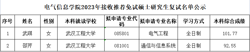 伟德(bevictor)官方网站2023年接收推荐免试硕士研究生复试名单公示