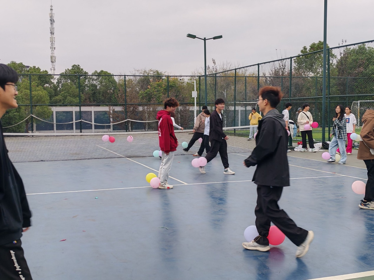 活动精心设计了五个小游戏,分别是你划我猜、运送呼啦圈、袋鼠跳跳向前冲、筷子夹乒乓球和连续接力。志愿者耐心讲解游戏规则,细心登记成绩,确保比赛公平公正。同学们在游戏中相互协作、密切配合,共同为团队的荣誉而战。在比赛接近尾声时,一场别开生面的脚踩气球游戏更是将现场气氛推向了高潮。同学们尽情释放自我,充分体会到了趣味运动会的独特魅力,激发了他们的运动热情与团结精神。经过激烈而精彩的角逐,“man!”队凭借其出色的表现与默契的配合,最终脱颖而出,荣获本次活动的冠军。
