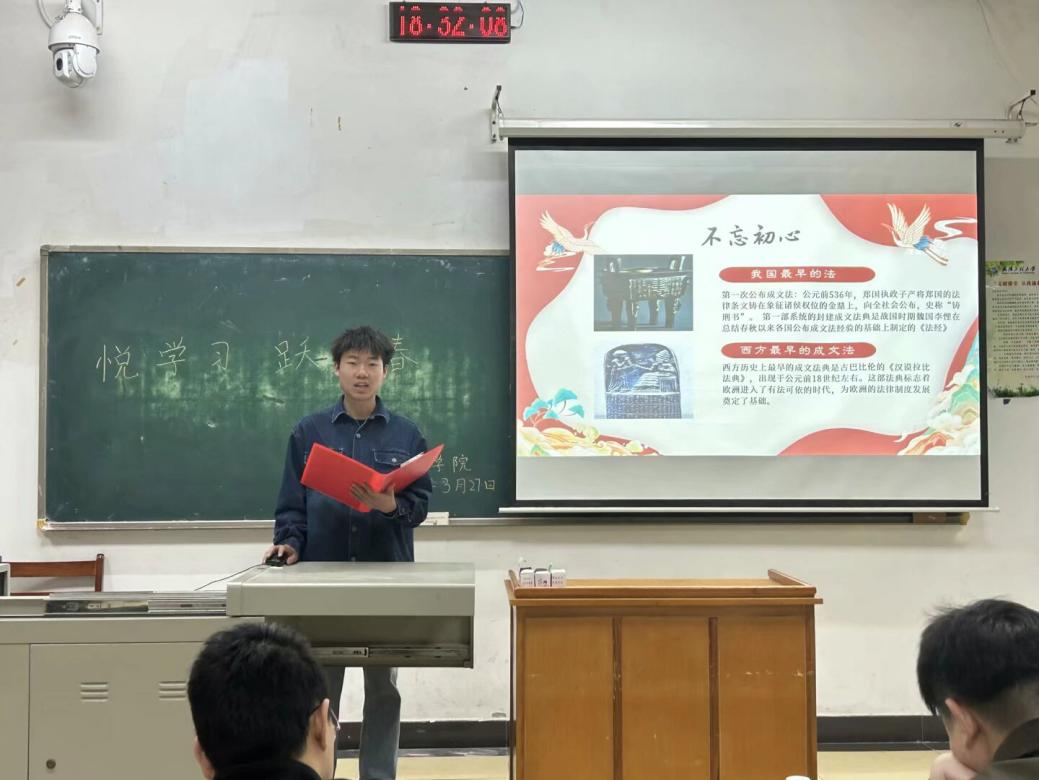 本网讯(通讯员 陈旭麒)为全面贯彻党的二十大和二十届三中全会精神,深入学习习近平总书记关于青年工作的重要思想3月27伟德(bevictor)官方网站在流芳校区L2106教室举行“悦学习·跃青春——百生讲坛”优秀主讲人决赛。学院团委副书记邬桢洁2024级辅导员陈旭麒参加活动。
