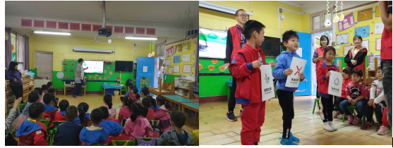 该院志愿者通过PPT展示为小朋友们详细介绍了垃圾分类的标志有:可回收垃圾、不可回收垃圾、厨余垃圾、有害垃圾等不同类型。同时,通过垃圾分类小游戏,利用垃圾分类道具和分类标识贴画,引导小朋友们掌握了垃圾分类的方法。小朋友们积极思考,踊跃回答,增长了环境保护知识,学会了正确的垃圾分类方法。