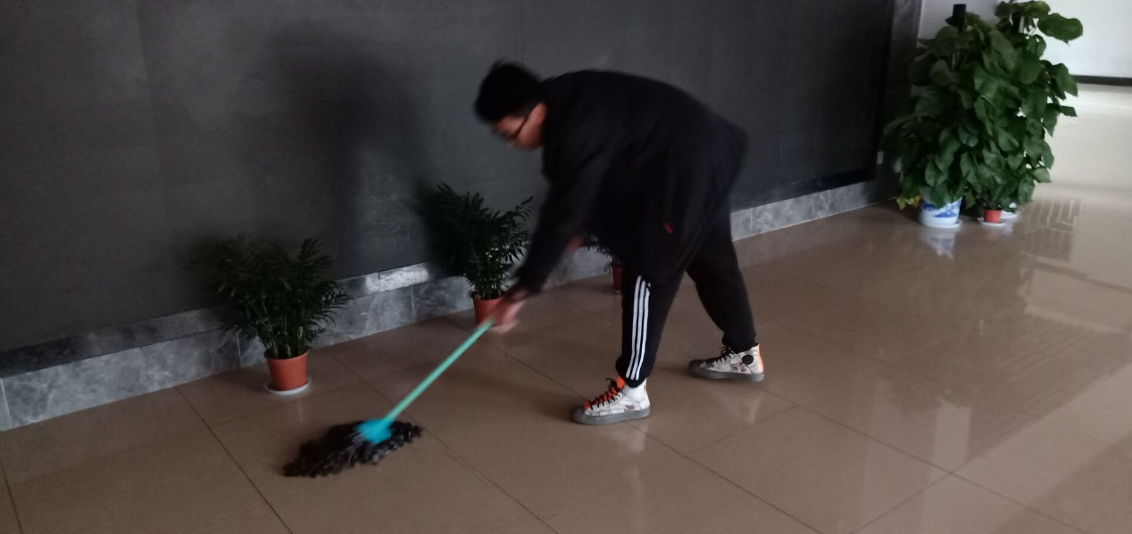 活动中,各位同学积极配合、各司其职,充分展现了他们对劳动的热爱、对电气大楼的热爱。他们手执扫帚、拖把、抹布不等,负责清洁电气楼一楼、二楼的地面、墙面、装饰版面等区域,体现了其不怕苦、不怕累、不怕脏的精神。细心的同学注意到了电气楼的“门面”,为一楼显示屏旁的几盆植株浇了水,身边负责拖地的同学顺势清洁了地面多余的水渍。打扫卫生的同时也关爱着每一个生灵,志愿活动就是总能像这样,让双方都感觉到温馨与美好。
