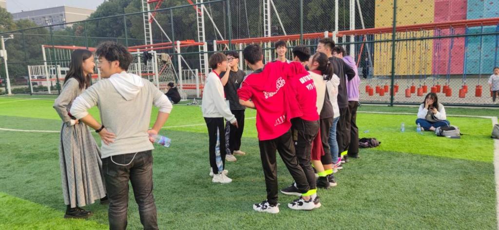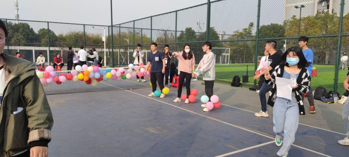 活动正式开始,在场同学自行分好队伍前往游戏区,本次活动共有爆破气球,夹弹飞奔,绑腿运水,同舟共济和你画我猜五个小游戏,每个游戏都由各部门志愿者担任的裁判为大家讲解规则,登记成绩。