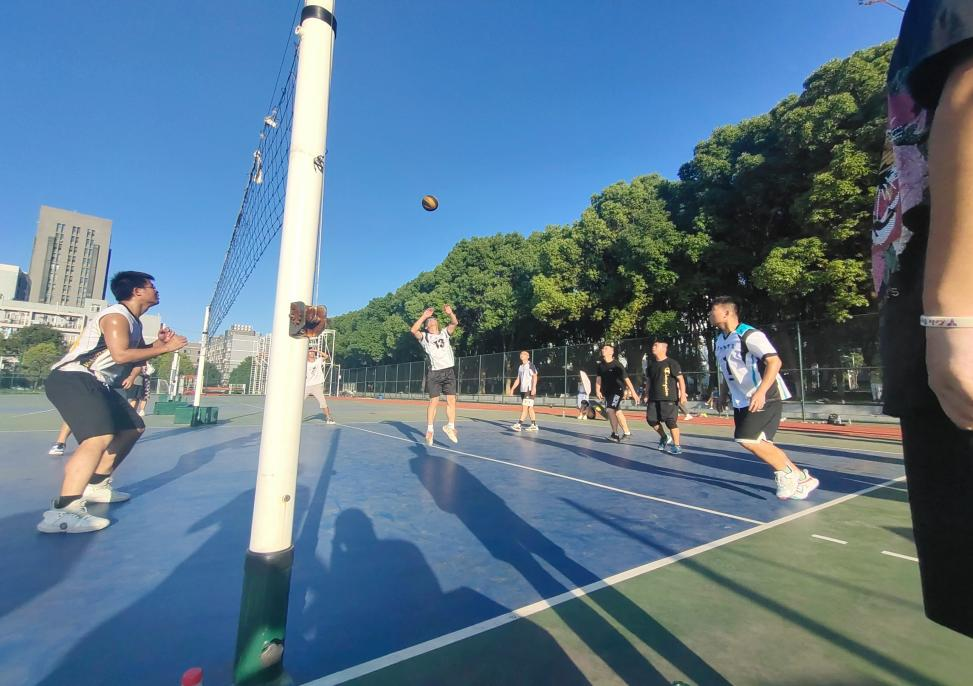 赛场周围站满了各队的队员,大家翘首以待这精彩的巅峰对决,正所谓“兵马未动,粮草先行”各方队员的加油助阵,让双方在开始时的气势上就难分高下。一声哨响比赛拉开了帷幕,参赛学生全身心地投入比赛中,他们个个情绪高涨。同学们在赛场上挥洒汗水、奋力拼搏,每一个垫球都凝集着智慧与团结,每一次救球都尽显他们青春的活力。