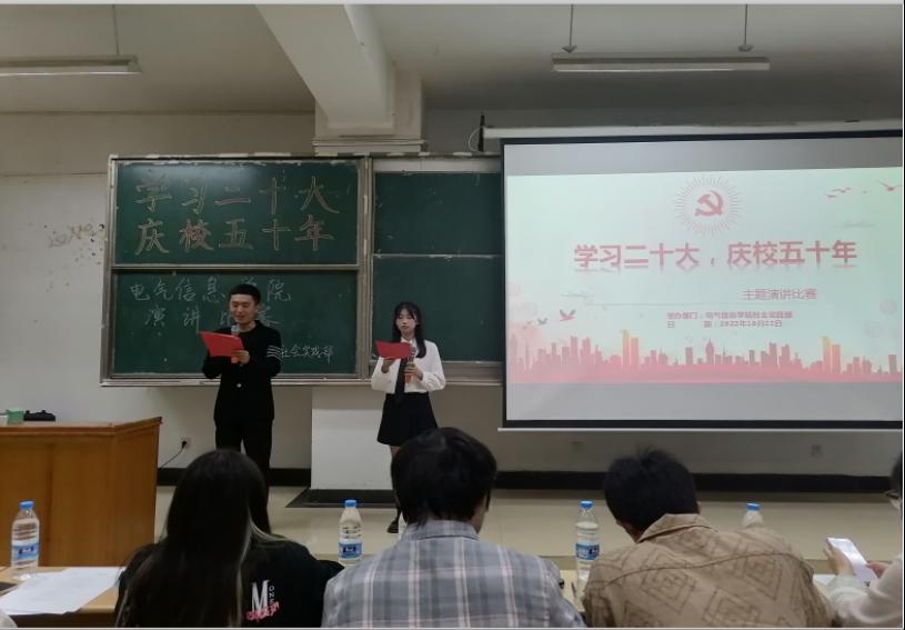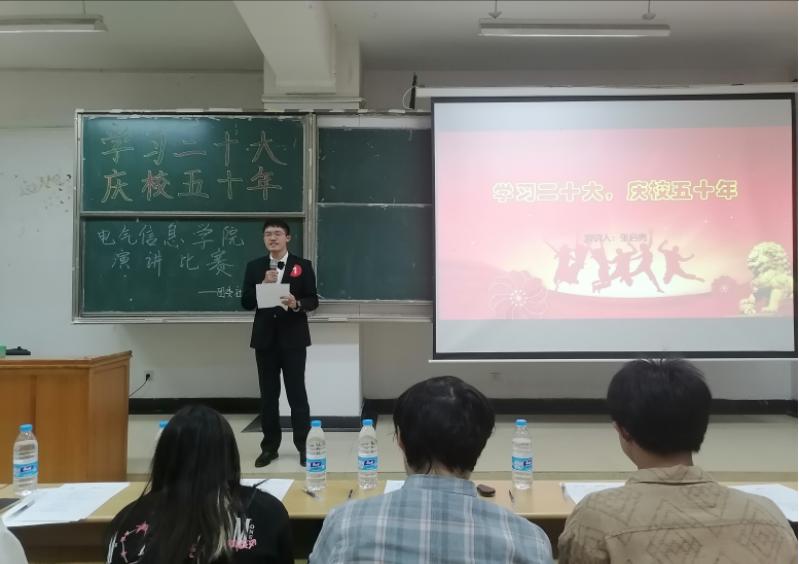 本网讯(通讯员 郭梦樵 李嘉琳)为深入学习贯彻党的二十大精神,庆祝武汉工程大学五十周年校庆,10月22日下午,伟德(bevictor)官方网站在L1119举办了以“学习党的二十大,庆校五十年”为主题的第一期演讲比赛。本次活动由各年级辅导员以及研究生代表、学生会主席团成员出席并担任评委。