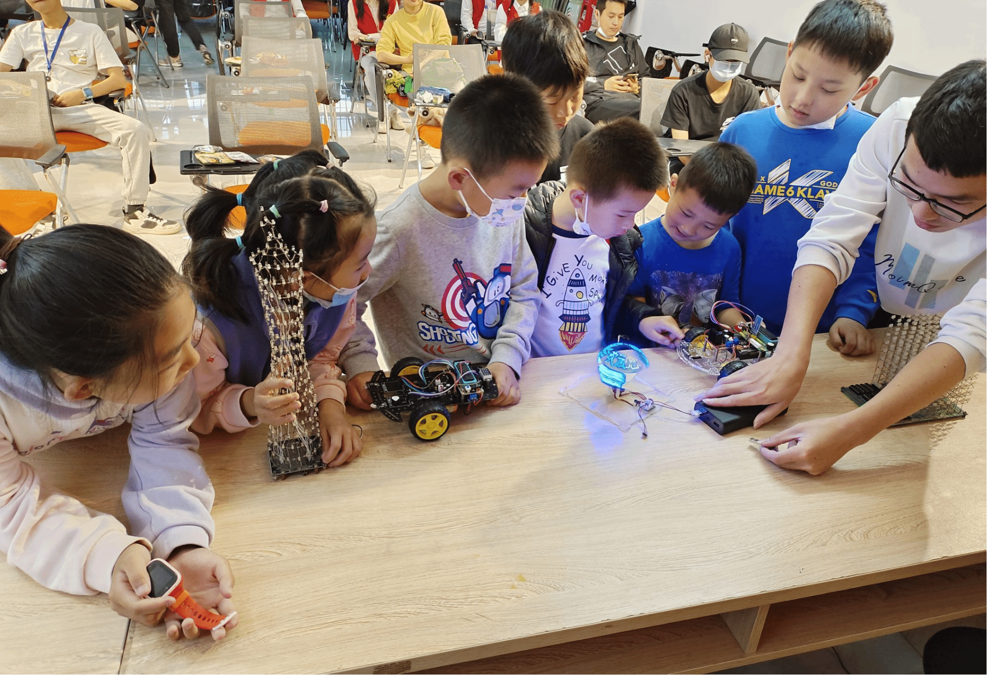 宣讲结束后,志愿者向小朋友展示了仿真无人机、蓝牙小车等科技产品,并向小朋友详细讲解了产品背后的科学原理,让小朋友零距离感受科学的魅力,调动了少年儿童热爱科学的兴趣。