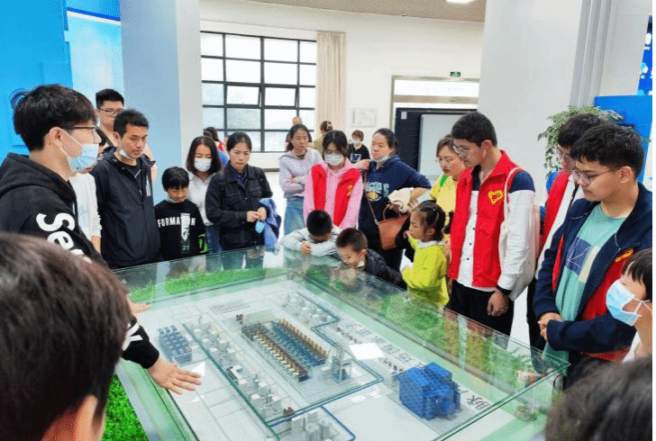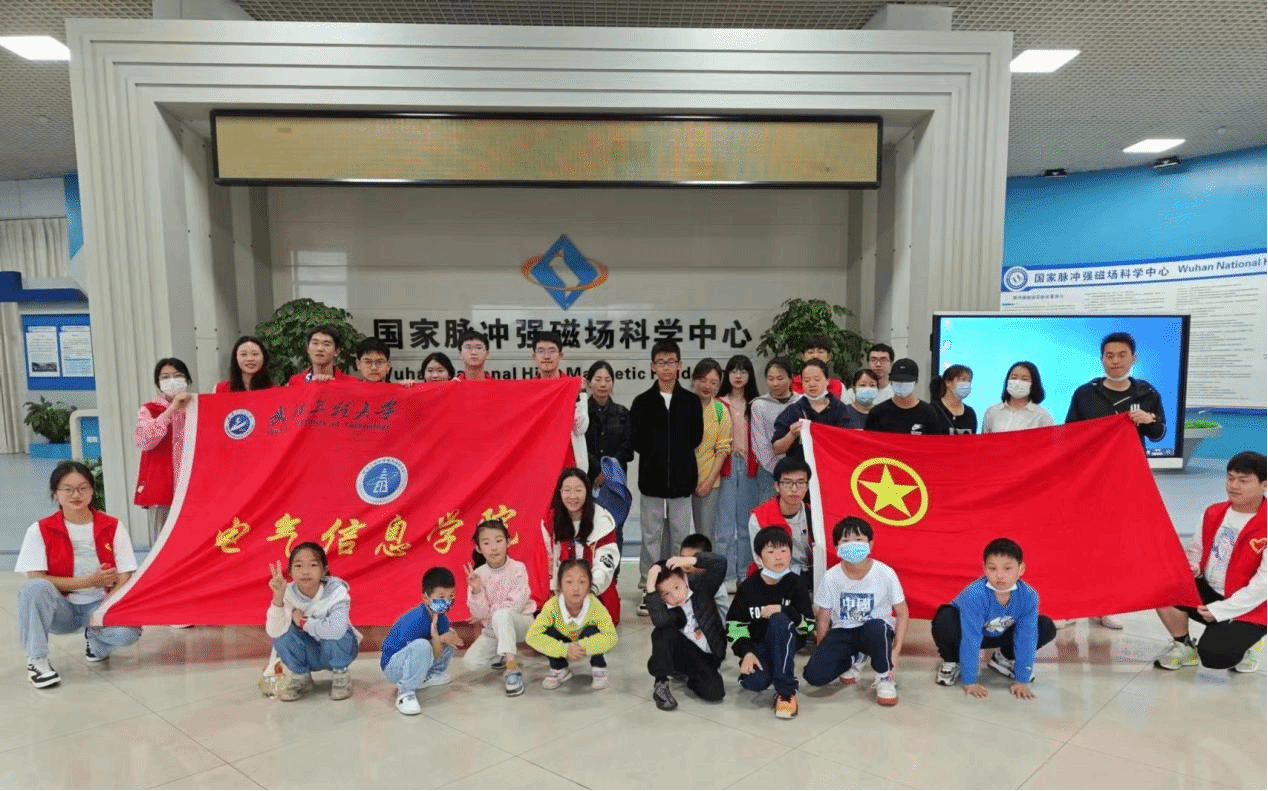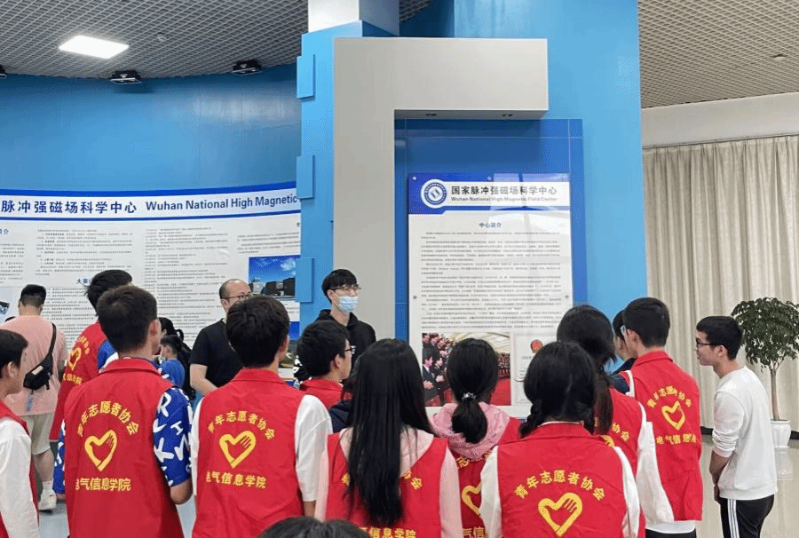 随后,志愿者与小朋友一起前往华中科技大学参观国家脉冲强磁场科学中心。在讲解员的带领下观看了研究中心宣传片,认识了脉冲强磁场的设施模型,初步了解到我国脉冲强磁场设施的发展历程及成就。志愿者与小朋友听得意犹未尽,近距离领略了脉冲强磁场设施的科技魅力。
