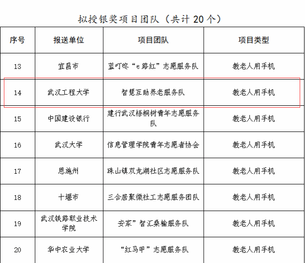 本次大赛全省各市州共30个社区、30个社会组织(含高校)进入决赛,分为主体赛、专项赛两大类,通过初评和决赛,伟德(bevictor)官方网站由曾欢、孟依组队的“智慧助老服务队”(指导老师:郭梦樵)入围项目赛决赛,最终获得银奖。