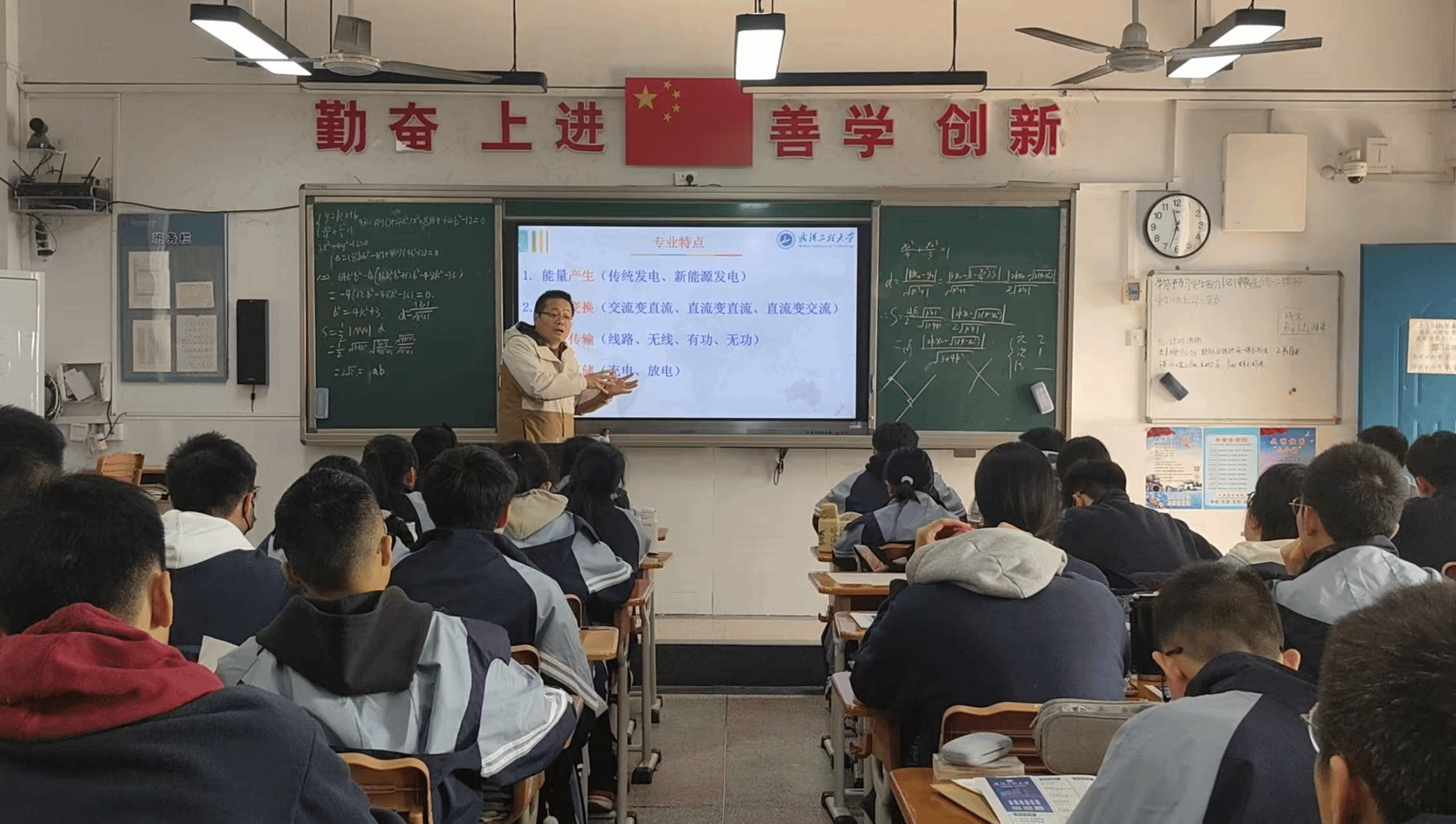 座谈会结束,王振走进高二年级两个班级课堂,为同学们带来了专业科普知识讲座。他围绕行业前沿应用、本科生就业前景、专业课程学习体系等方面,对电气工程及其自动化专业进行了详细介绍,并针对学生关心的专业招生分组、大学入学转专业及奖助学金政策等问题,进行了耐心细致地解答。