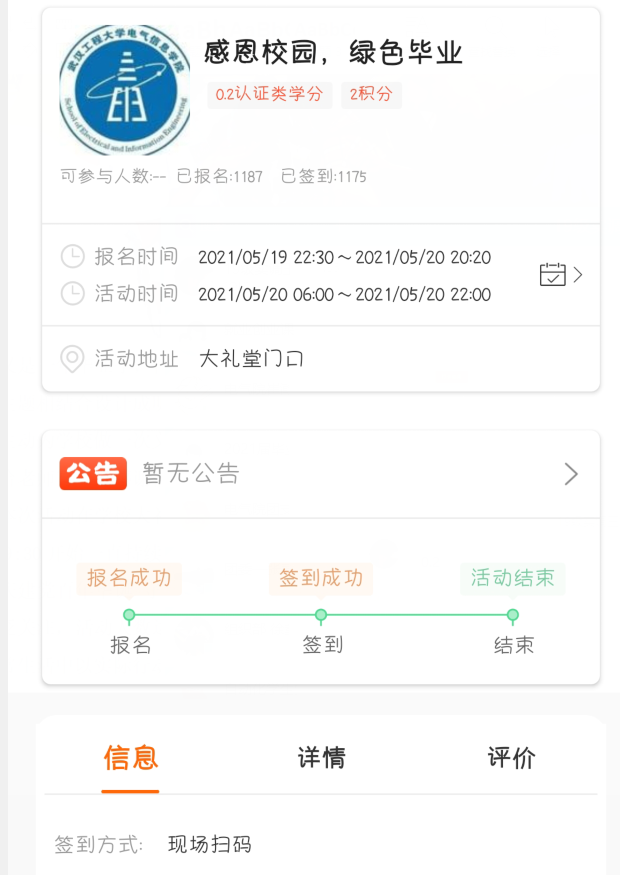 本次活动在学校大礼堂门前开展,工作人员分工明确,轮换值班,从早上9:30开始一直持续到下午18:30,志愿者利用校园贴吧、微博、官Q等,对“庆祝中国共产党成立100周年 守工大绿色校园”活动进行了系列宣传,受到了全校师生的广泛关注,活动人数达1000人次以上。
