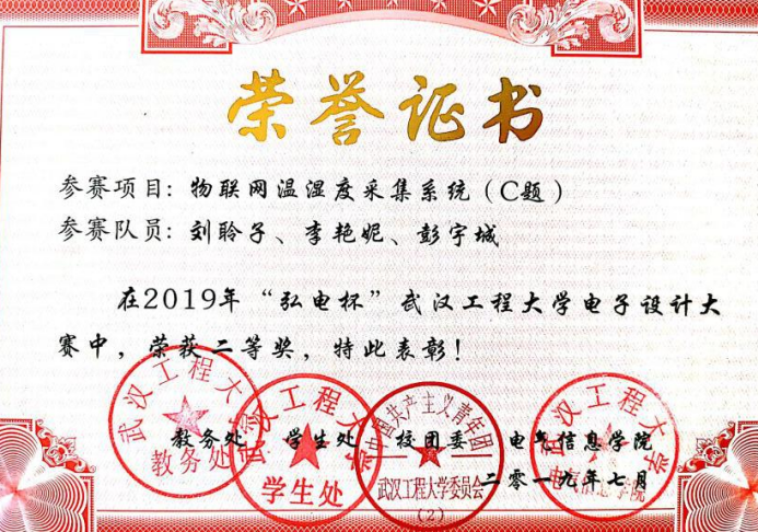 武汉工程大学“弘电杯”电子设计大赛二等奖