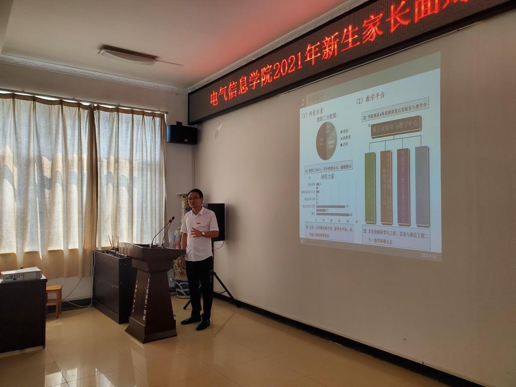 黄自鑫老师向新生家长详细介绍了学院的历史沿革、发展规划、师资力量、教学科研、考研现状等相关情况,并结合电气学院专业特色向家长们展示了科创竞赛、志愿服务、社会实践、体育竞技等丰富多彩的学生活动,向新生家长充分展现了电气学院学子综合能力全面发展提升的丰硕成果。