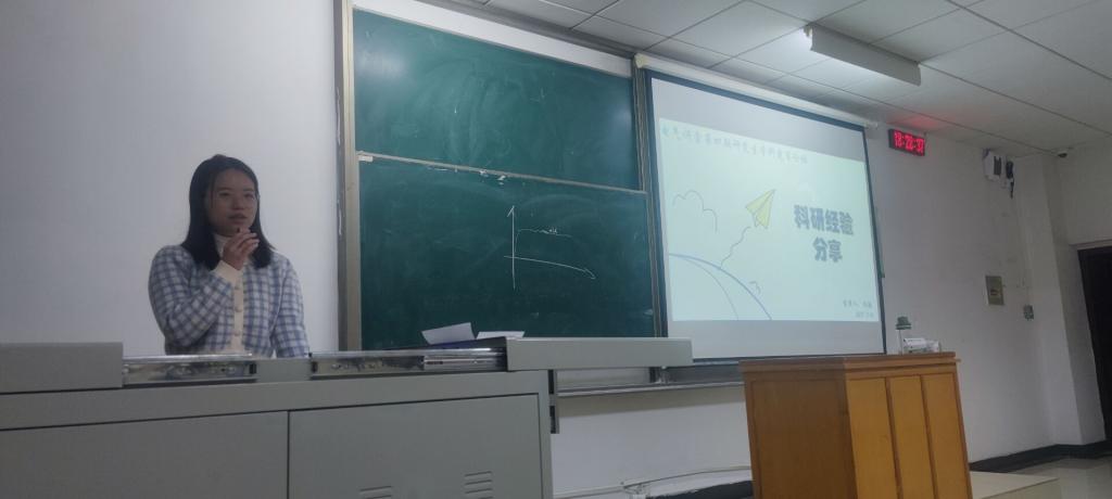 研究生国家奖学金获得者杨颖分享的主题是“科研方面:发表软著与专利经验分享”,从发文章由易到难的过程向同学们介绍了发表软著,专利的窍门,鼓励大家开放思维,多想,多做,不要让发文章成为自己研究生生涯的拦路虎。最后也是特意制作了一个短视频鼓励学弟学妹们不畏艰险,勇往直前。