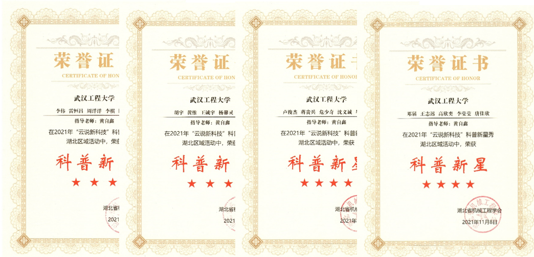本网讯(通讯员 黄自鑫 卢俊杰)由中国机械工程学会主办的2021年“云说新科技”科普大赛圆满落幕,我校伟德(bevictor)官方网站学子在本届大赛中荣获佳绩,取得了国家级五星作品1项(全国十强)、网络人气之星作品1项、省级四星作品2项、省级三星作品2项的优秀成绩。