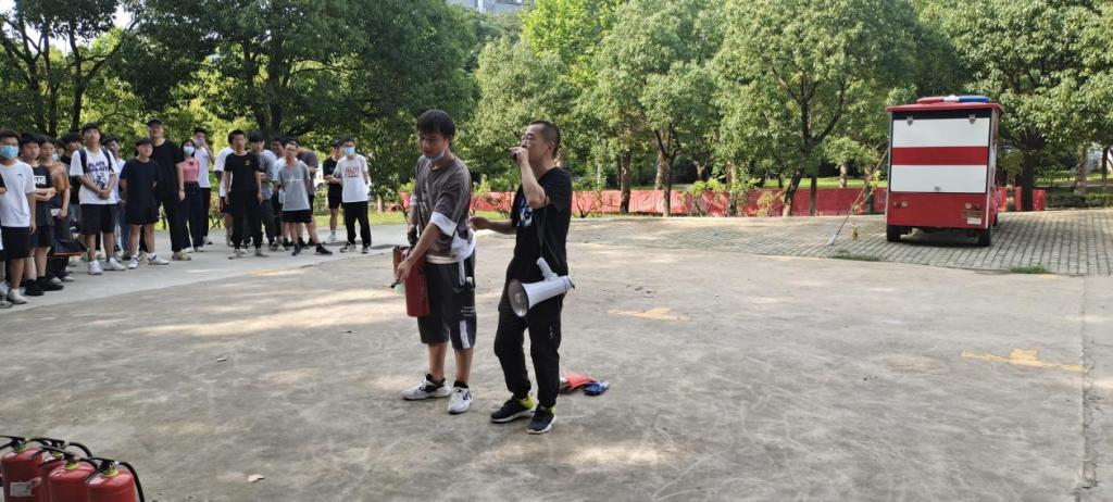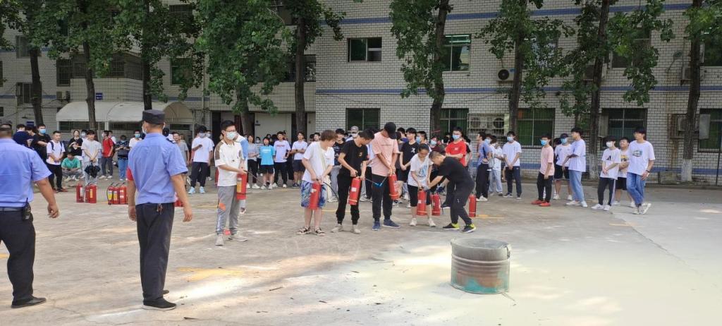 校保卫处王子龙老师结合全国高校发生的火灾典型案例,强调了消防安全培训的重要意义和必要性。告诫同学们不使用大功率电器、不乱接电线,不在宿舍存放易燃易爆物品,外出要确保电器断电。随后现场示范了灭火器的使用及扑救火灾的方法。“提、拉、握、压”,对现场同学进行一对一指导。同学们在保卫处老师的指导下依次使用灭火器,扑灭明火。
