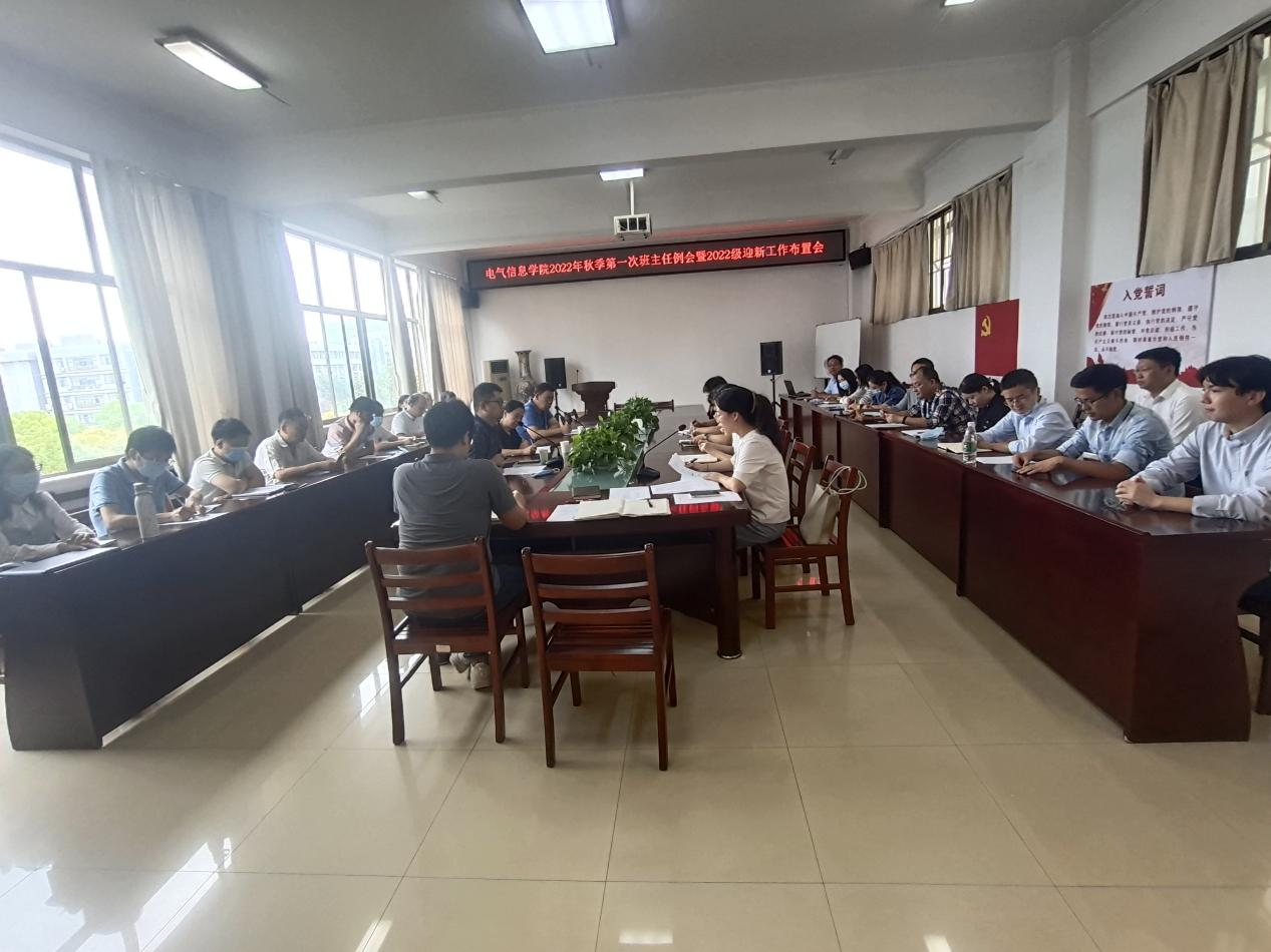 本网讯(通讯员 任伟)9月1日下午,电气信息学院在319会议室召开2022年秋季学期第一次全体班主任工作会暨2022年迎新工作布置会。学院党委书记谢春晖、党委副书记李国保、副院长田斌,全体辅导员、班主任参加会议,会议由党委副书记李国保主持。