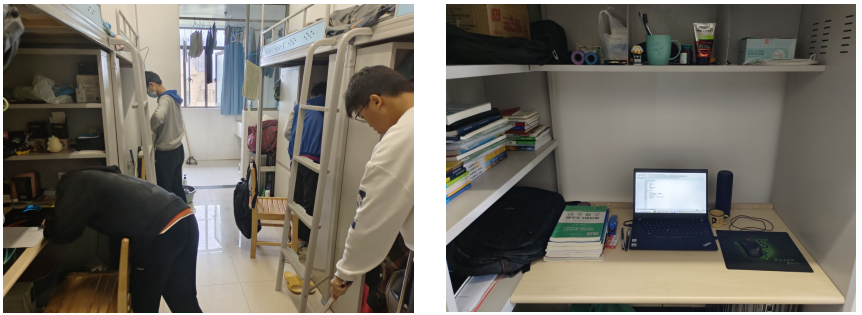 部分学生在宿舍楼栋整理寝室内务、打扫公共区域。对待宿舍这个小家,同学们别有心得、大显身手,认真细致地对寝室桌面地面、卫生死角、公共走廊进行了打扫。同学们纷纷表示,在室友的齐心协力下,再现了整洁干净的小家,感受到别样的温馨,以后也会继续保持。