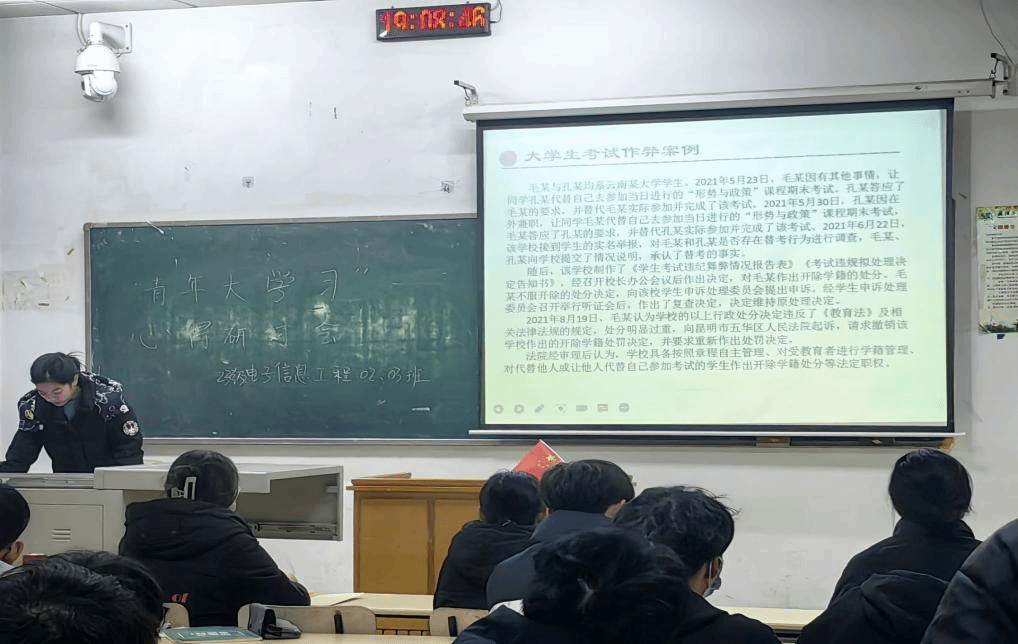 为营造严肃认真的期末考试氛围,伟德(bevictor)官方网站团委于12月10日开展了“创建优良学风,严肃考风考纪”主题团会,通过学习《武汉工程大学学生手册》,重点研读了《武汉工程大学违纪处分办法》中的重点内容,介绍典型案例,强调期末考试纪律的重要性。各年级班主任组织学生召开“诚信考试”主题班会,督促同学们合理科学地安排考试期间的学习计划,确立学习目标,并结合近年的相关案例强调了诚信考试的重要性,强调违纪作弊的后果,加深了同学们对规章制度的敬畏之心,引导同学们严格遵守考试规章制度,端正态度对待每一场考试,靠真实能力取得优异成绩,用诚信行为展现良好考风。通过开展学风主题班会,让班级同学树立纪律意识,明白了严明的纪律是优良学风的重要保证,引领学生主动融入学风建设中。