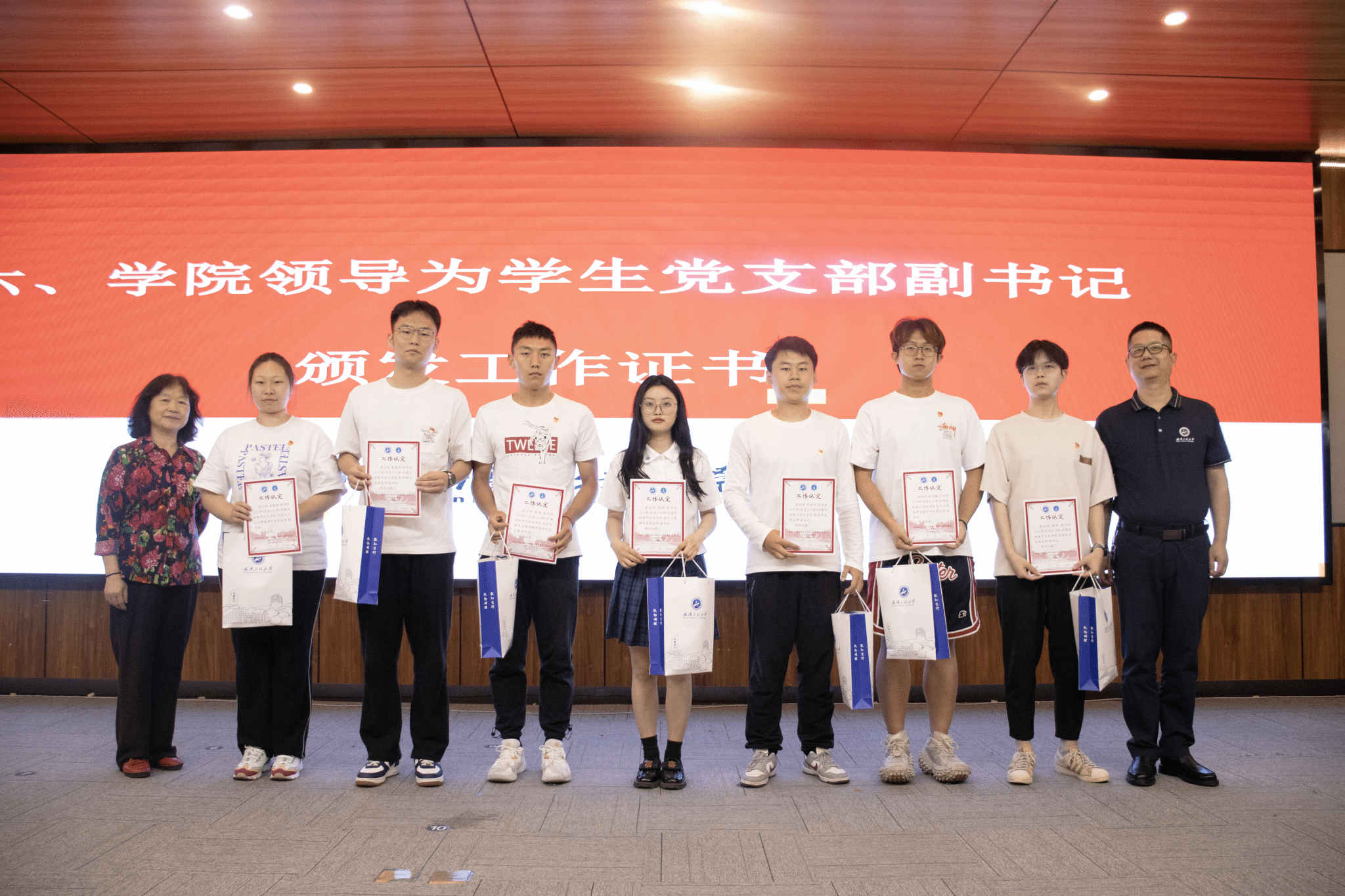 最后,学院领导为毕业生党员担任支部副书记的同学颁发了工作证书,为全体毕业生党员依次发放了党员纪念品,并且合影留念。