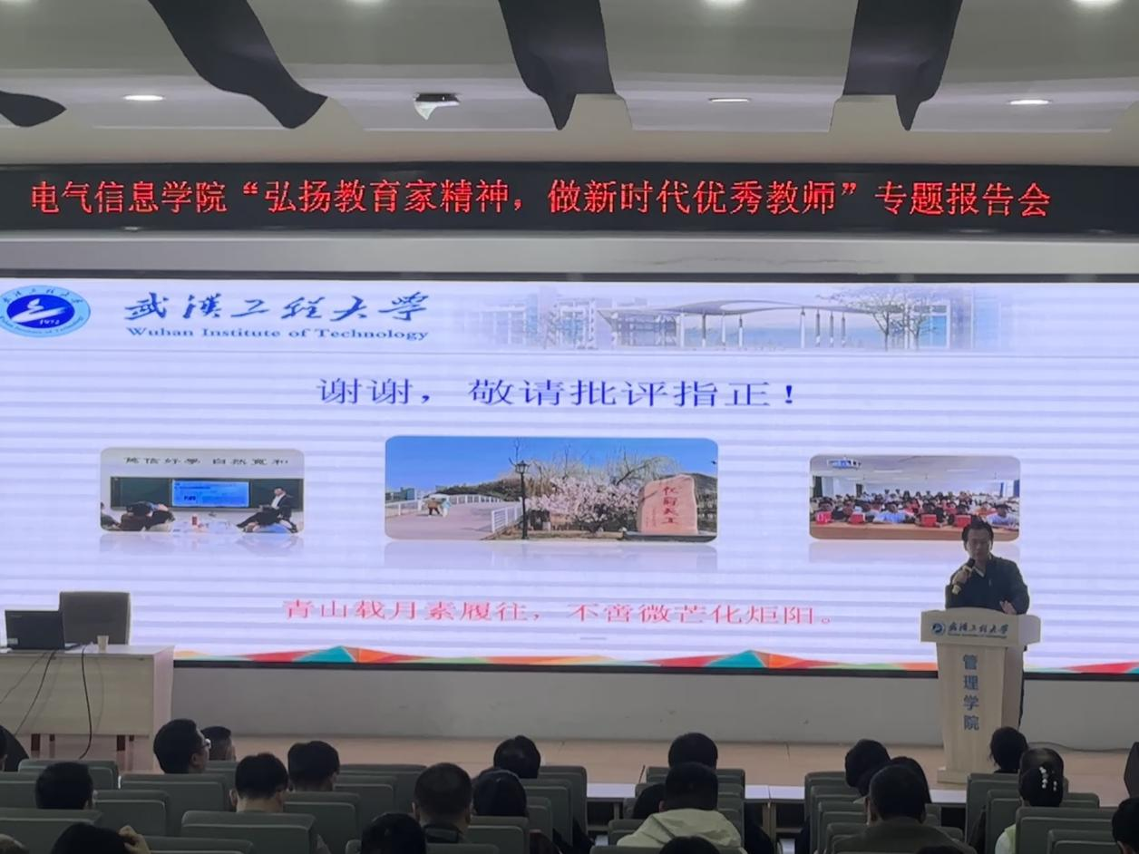 学院院长洪汉玉指出,2024年,学院获批控制科学与工程一级学科博士点,湖北省科学技术进步一等奖,实现了跨越式发展。成绩的取得,是全院师生持续共同努力奋斗的结果。他强调,全院教职工要以袁华教授为榜样,牢记为党育人、为国育才的初心使命,用智慧、爱心、汗水不断践行教育家精神,充分发挥干事创业的创造力和凝聚力,强化人才培养、科学研究和高层次人才引培工作,弘扬勤学实干、毕力同心、共创一流的精神状态,推动学院高质量发展。