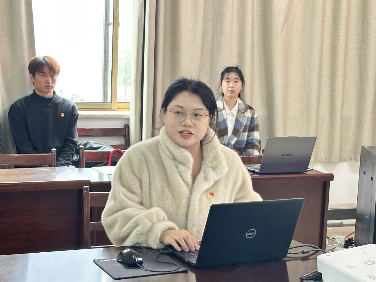 电信研究生党支部罗欣作为新发展研究生党员代表发言,分享在党旗引领下,以勇于探索、敢于创新的精神,在科学研究中锐意进取,获得研究生国家奖学金等荣誉,体现出作为一名共产党员的先锋模范作用。