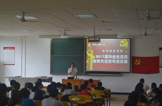 6月14日上午,我院在流芳校区3102教室隆重举行2017届毕业生党员教育大会暨专题党课活动。学院党委书记余武明、党委副书记康志勇、党务干事颜星星出席大会,2017届毕业生党员参加了此次大会。大会由学院党务干事颜星星主持。
