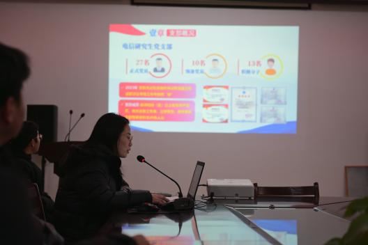 汇聚青春力量,携手党团共建。电信研究生党支部书记李阳以“对标三个争先,建设三型党支部”为主题,汇报党支部在理论学习科学研究志愿服务等方面的建设举措与成果,鼓励与会党员、团员要在学习和生活中积极发挥模范带头作用2022级电子信息工程3班团支部张锦鹏汇报团支部在团结同学、服务班级、发挥青年先锋作用方面的努力与成果加深了同学们对团组织工作的理解与认识。