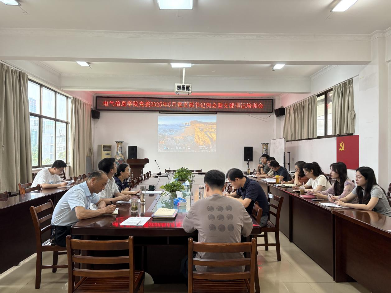 本网讯(通讯员 李阳) 5月22日上午,伟德(bevictor)官方网站在4B319会议室召开2025年5月党支部书记例会暨支部书记培训会,学院党委书记谢春晖主持会议,院党委副书记周磊、组织员、全体党支部书记参加会议。