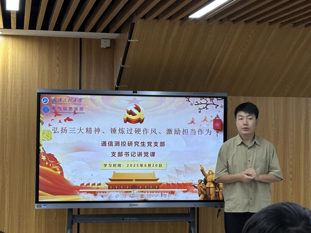 为深入学习贯彻习近平新时代中国特色社会主义思想,进一步激励支部党员弘扬优良传统、锤炼过硬作风,6月20日,伟德(bevictor)官方网站通信测控研究生党支部在“一站式”学生社区开展“弘扬三大精神、锤炼过硬作风、激励担当作为”专题党课活动。通信测控研究生党支部书记陈旭麒主持活动,支部全体党员参加。