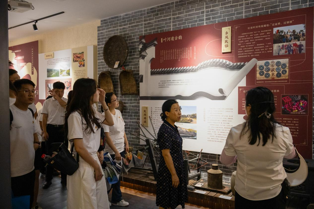 实践队来到红安县永佳河镇叶河村开启研学之旅,寻访开国中将、中国人民解放军第二炮兵原政治委员李天焕将军故居等革命先烈足迹,沉浸式感悟“大别山精神”。同时,全体师生来到叶河村政治生活馆,参观当地特色民俗风情,了解家风民风,通过实地走访,切身感受叶河村在党的领导下脱贫攻坚、乡村振兴取得的成就。