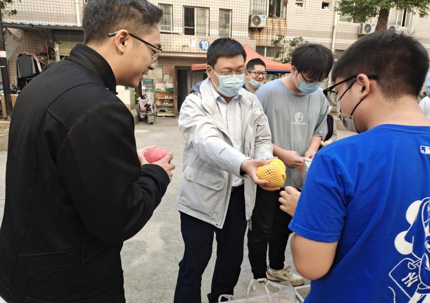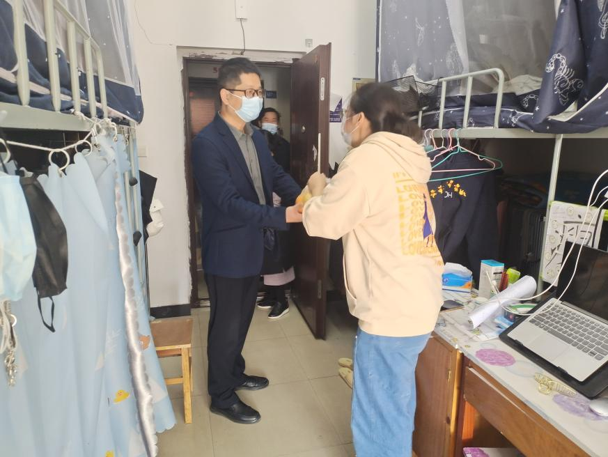 “同学,送你一个平安果,祝你平安又喜乐!”“给你一个大黄橙,祝你考研心想事成!”学院领导、老师将一个个大苹果、大黄橙亲自送到毕业生手中,勉励同学们珍惜时间、不负韶华、认真复习,坚持到底!学院领导一行先后走访了2023届女生所在的教辅7栋宿舍及泰塑9栋、10栋男生宿舍,与宿舍同学共话家常,真情勉励。