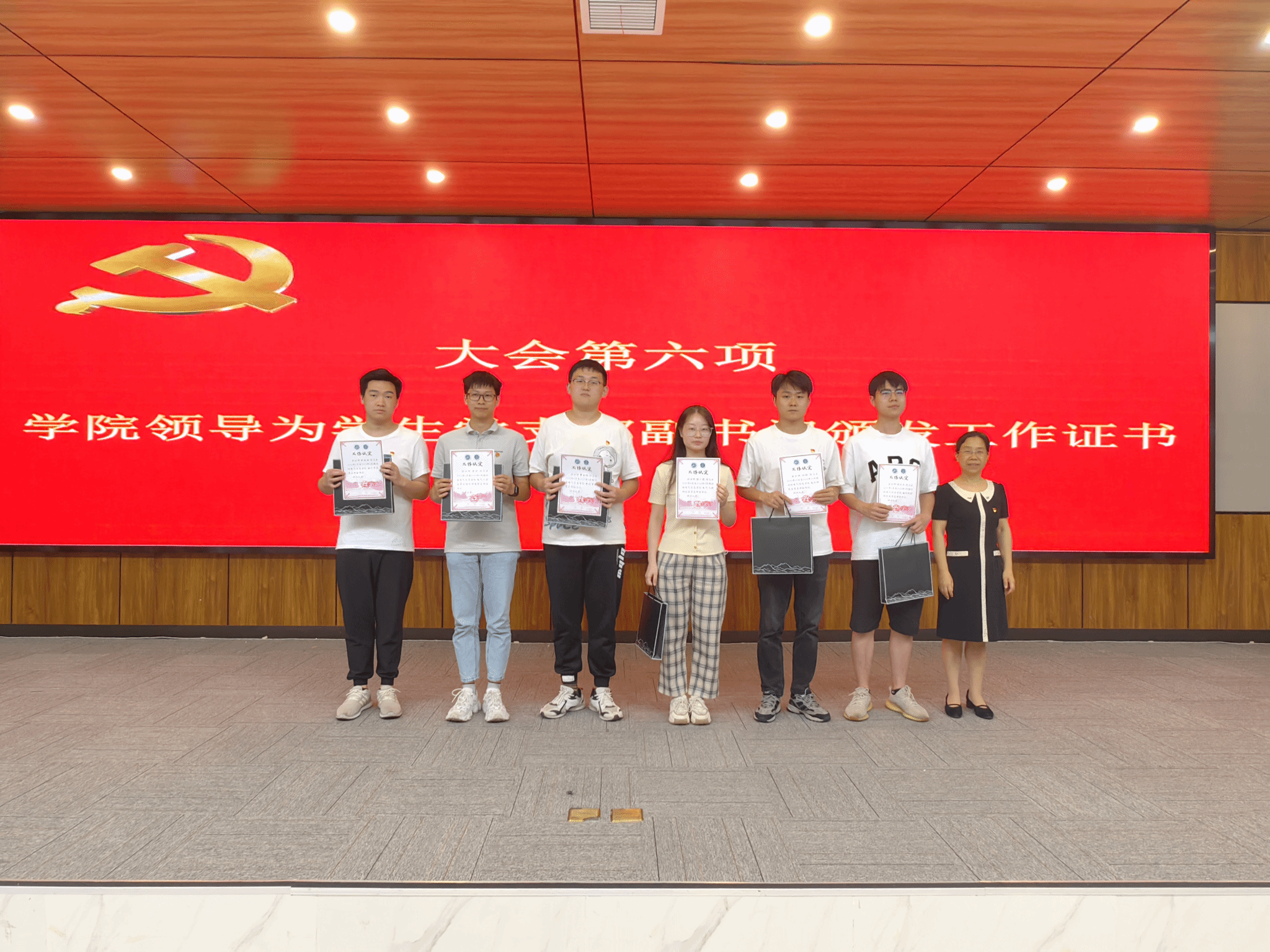 会上,学院领导为毕业生党员担任支部副书记的同学颁发了工作证书,为全体毕业生党员依次发放了党员纪念品。