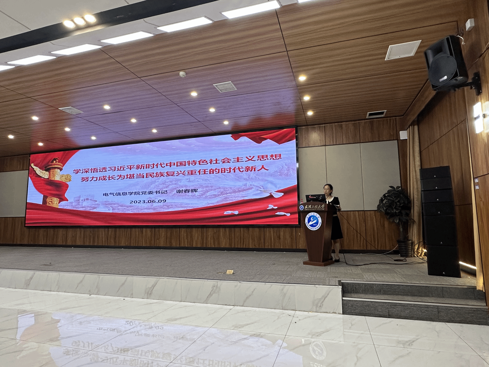 本网讯(通讯员 周雯琪)6月9日中午,伟德(bevictor)官方网站在图灵报告厅召开“学思想,强党性,砥砺奋进新征程”2023届毕业生党员教育大会。学院党委书记谢春晖、党委副书记李国保,学生党支部书记及全体毕业生党员参加会议。会议由学院党务干事周雯琪主持。