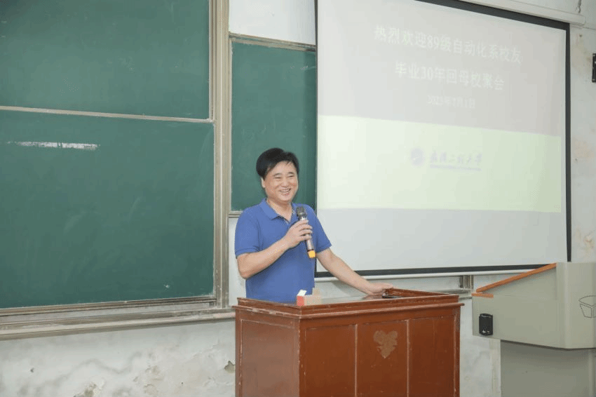 本网讯(通讯员 邬桢洁)7月1日上午9点,伟德(bevictor)官方网站89级自动化系校友在阔别母校三十年之后重返校园,在武昌校区一教1102教室召开座谈会。正校级干部叶芃、武汉纺织大学副校长唐敏、党政办公室主任但继恩、校友工作处处长邓新洲、原伟德(bevictor)官方网站党委副书记陈建、时任89级自动化辅导员余武明、伟德(bevictor)官方网站退休教师谭尚毅、伟德(bevictor)官方网站领导班子成员参加会议,本次座谈会由89级学生代表周小文校友主持。