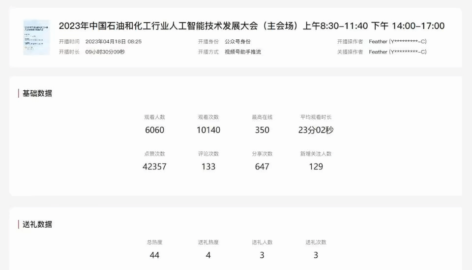 同时举办智慧油气田建设专题论坛 、智能勘探与地球物理专题论坛 、智能油气藏地质与钻完井专题论坛 、智能油气开采专题论坛、智能化工与人工智能新技术新应用专题论坛等5个分论坛,500余位代表现场参会,线上参会人员6千余人,线上观看次数1万多次,点赞4万多,分享6百多次。