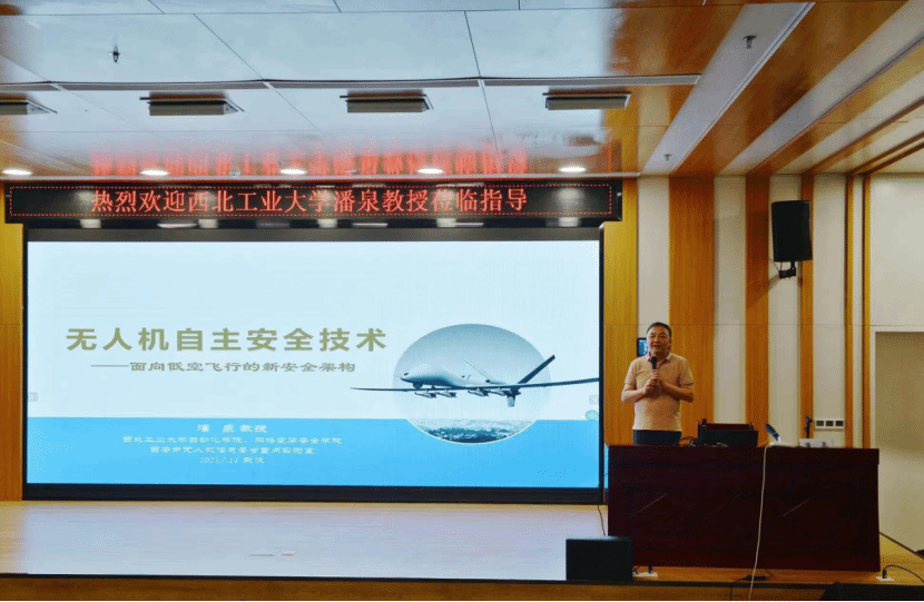 潘泉教授首先向师生们介绍了当前无人机的应用现状,无人机的应用从中高空/大中型无人机,迅速拓展到中低空/中小型无人机,飞行环境从开阔单一的野外环境,逐步向未知的、密集的、高动态的城市、山地、丛林等中低空复杂环境转变,无人机与环境耦合交互的程度更深。同时,无人机的任务日趋多元复合,无人机进入更多的行业领域,应用领域正在不断扩展。飞行空域、应用环境和承担任务的变化,给无人机安全带来新的严峻挑战,其安全威胁已经超出传统无人机安全飞行范畴。报告从感知规避概念模型技术展开,构建可量化、可验证的无人机系统自主安全模型、安全架构,梳理相应的技术体系,提出无人机自主安全概念和体系,探讨无人机系统自主安全保障机制,以推动无人机更加安全地拓展到人与环境深度耦合的应用领域,保障无人机行业的健康发展,也为其他无人系统(无人车、无人船、无人艇等)安全体系研究提供借鉴。