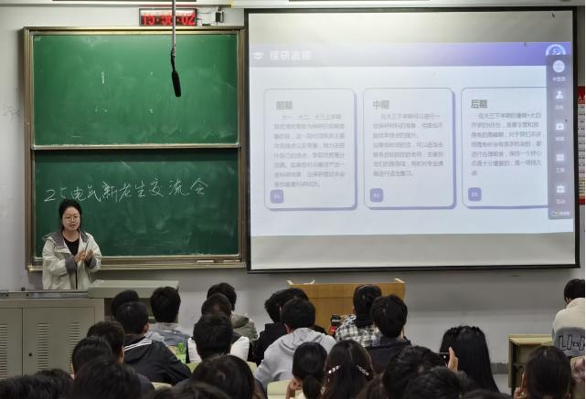 交流会上,学长学姐强调,保研是一场持续努力的“马拉松”,优异的学业成绩是“基本盘”。大家一致建议:尽早通过英语四六级,学会平衡社团活动与学科竞赛,并鼓励大家主动联系导师,尽早接触科研项目,为未来的深造之路奠定坚实基础。从保研的具体流程、校内外的资格获取,到申请材料的精心准备、各类专业名词的解析,再到学科竞赛的参与和项目经验的积累,学长学姐用亲身经历,为同学们梳理出一份清晰的“行动清单”,有效破除了信息壁垒。