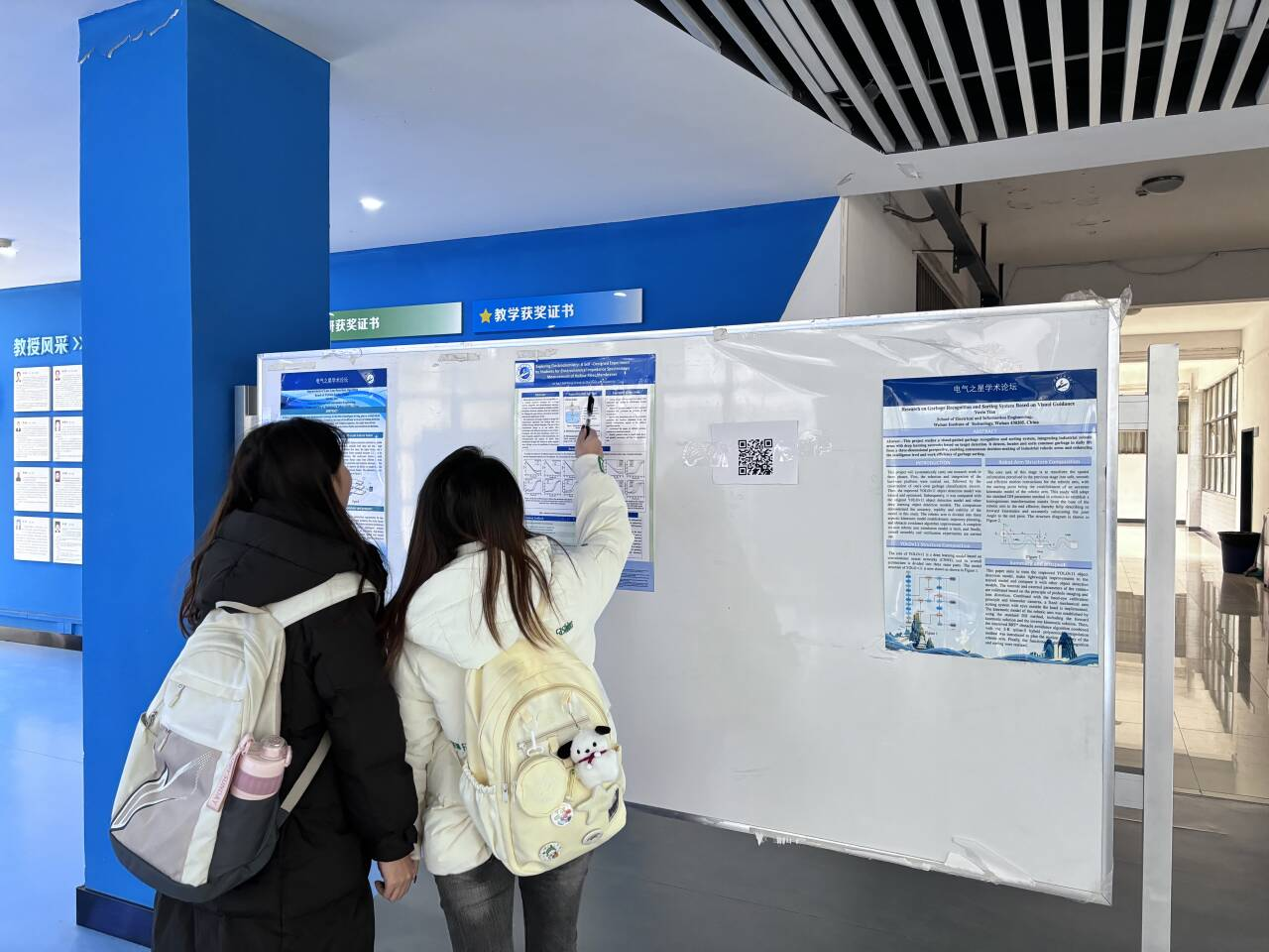 开幕式后,学院研究生通过学术海报展示和报告,集中展现了电气学子在人工智能、集成电路、新能源等前沿领域的创新成果。200余名研究生参与本环节活动,并进行学术交流探讨。辅导员郭星锋为5名学术海报优秀奖和12名学术报告优秀奖颁奖。