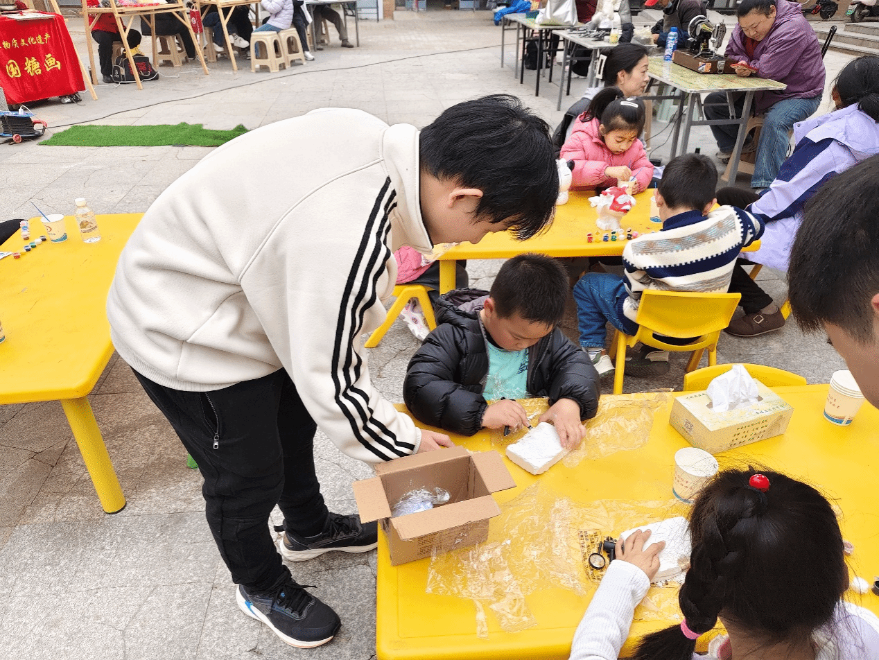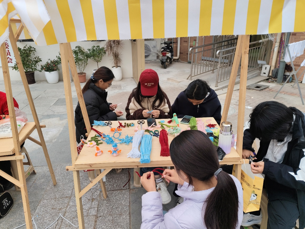 活动现场,“知音汇” 志愿者们布置手工扭扭棒、玩偶涂鸦、考古寻宝3个集市摊位。志愿者们备好色彩鲜艳的扭扭棒,耐心指导社区居民尤其是小朋友发挥想象,将柔软的扭扭棒扭折、拼接,制作成花朵、小动物、钥匙扣等创意小物件,一根根普通的扭扭棒在大家手中变成精致小摆件。