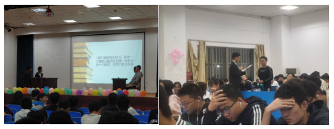 本次活动的主题是“荣耀竞赛,智者为王”。决赛分为四个环节:第一个环节为分组限量答题。选手们“有备而来,对答如流”,迅速又正确的回答了涵盖政治、经济、文化、社会、生态等各领域的赛题。第二个环节为分组抢答。现场竞争十分激烈,选手们在抢答速度上争分夺秒,在准确答题上你追我赶,比分一度逼平,观众们纷纷为选手加油打气。第三个环节为90秒限时快答。选手们在短短90秒内完成了数十道题目的快答,各选手正确率不相上下,现场气氛紧张。第四个环节为互动PK。选手们接受了现场观众的PK挑战,你问我答,各有千秋,带领全体同学享受了一场知识的饕餮盛宴。