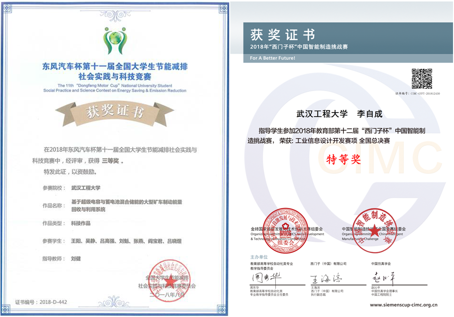 除此之外,我院还秉持“将学科竞赛成功转化为先进技术和生产力”的理念,已将多项竞赛成果融入企业生产实践。其中,由刘健老师指导的《大型矿车制动能量回收与利用系统》项目成立了武汉能研电气有限公司,共同推进该项目的产业化进程。由黎曦老师指导的“芯自造团队”已将电子积木研究成果投入智能教育教学实践中,现已获企业资金支持并投产使用。