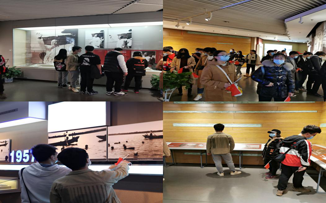 志愿服务结束后,志愿者们来到横渡长江博物馆进行参观,博物馆高42米,共7层,展示厅由序厅、主展示厅、体验厅、观景区等组成,展示内容包括"击水中流"、"情系长江"、"大江弄潮"三部分,通过图片、照片、视频、实物等史料,结合写实油画、雕塑等艺术品,再现了毛泽东多次横渡长江的历史,展示武汉历次群众性渡江活动盛况,以及武汉人历史悠久的渡江习俗、文化。