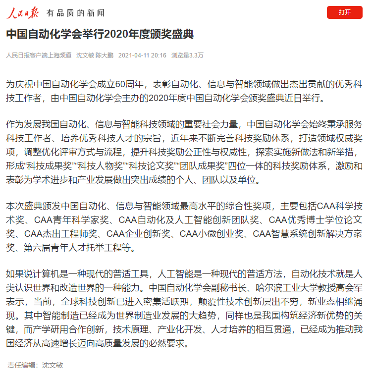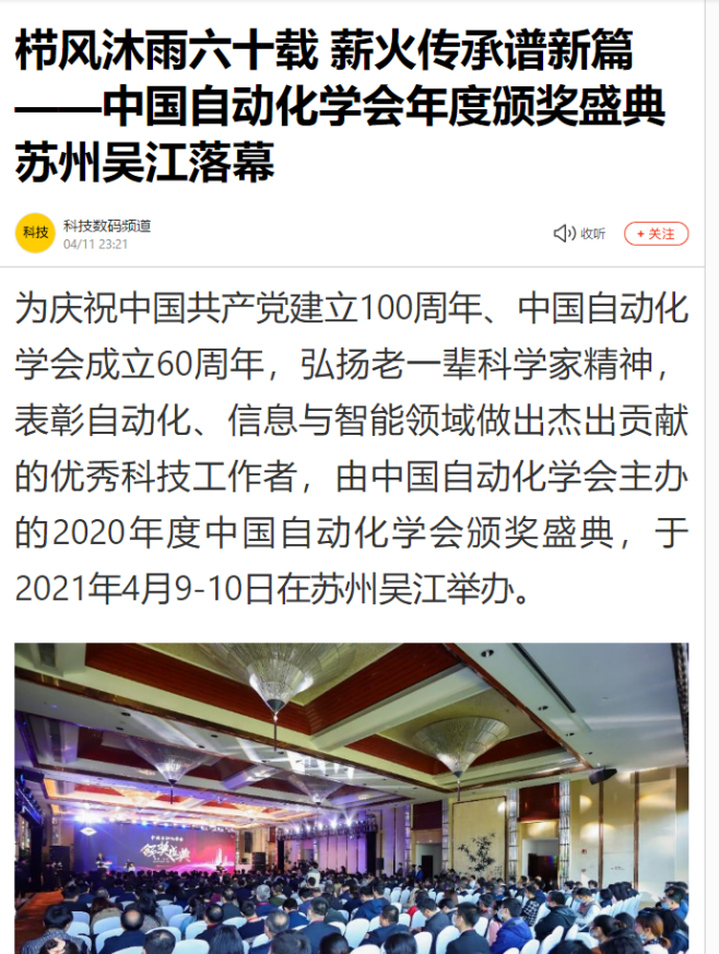 中国自动化学会举行2020年度颁奖盛典落幕