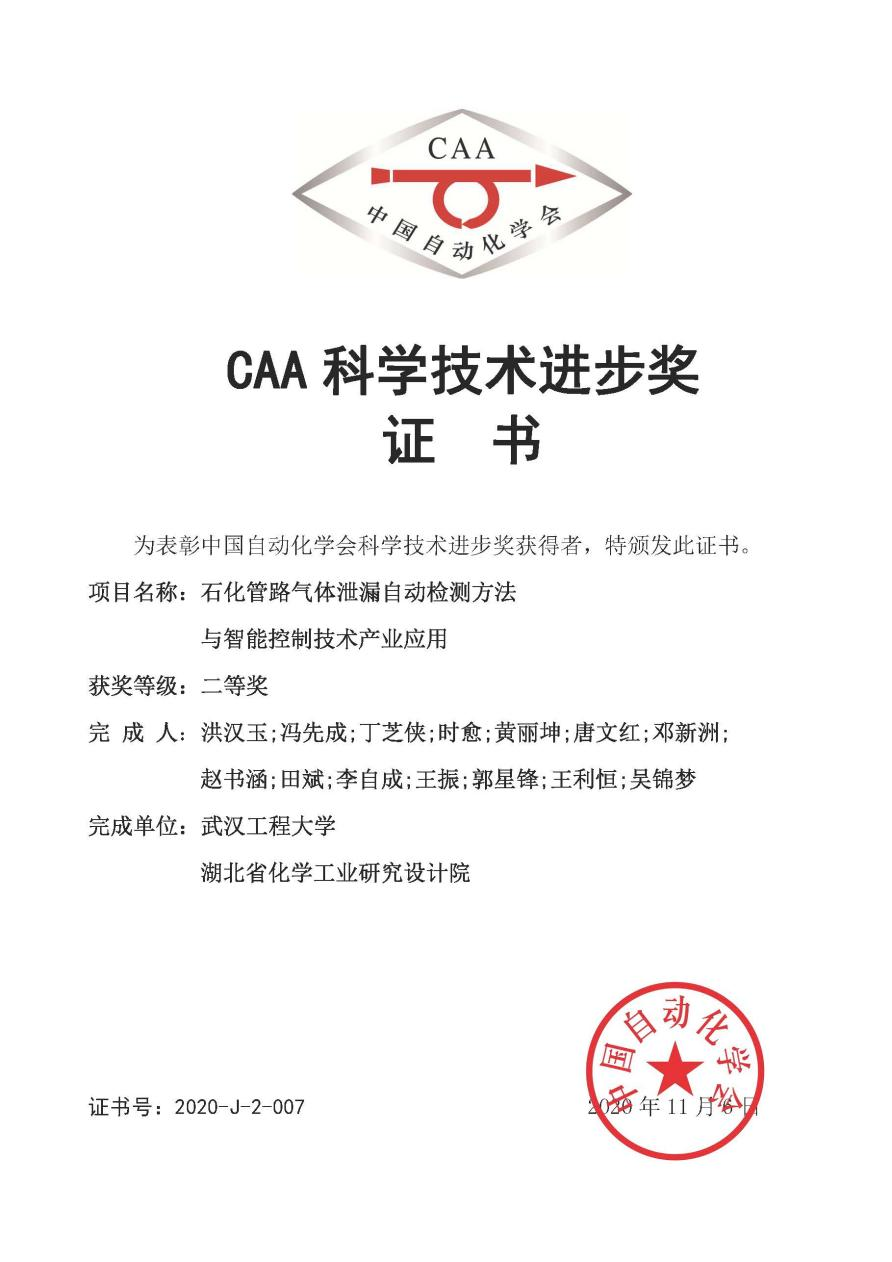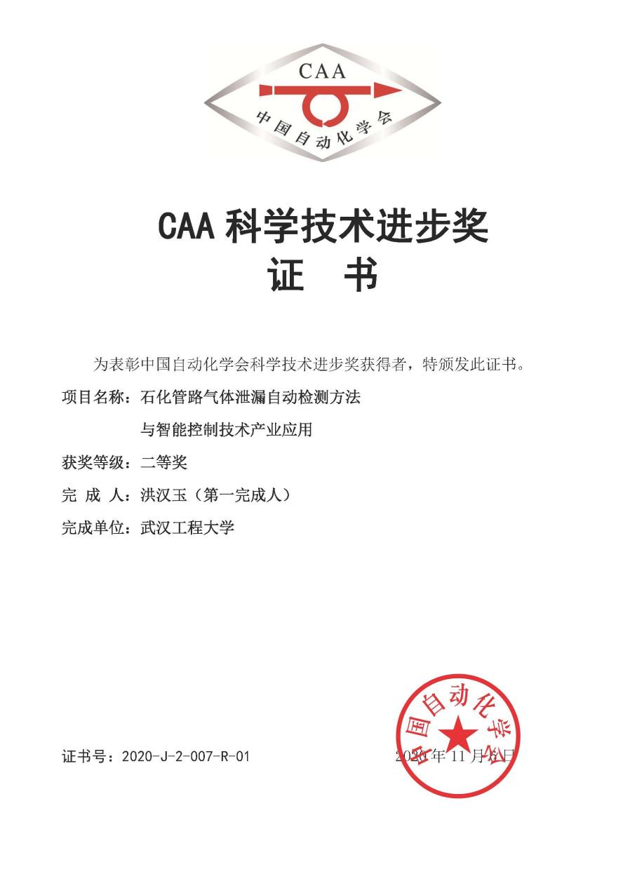 本网讯(通讯员 朱丽娜)4月9-10日,为庆祝中国共产党建党100周年、中国自动化学会成立60周年,弘扬老一辈科学家精神,表彰自动化、信息与智能领域做出杰出贡献的优秀科技工作者,由中国自动化学会主办的中国自动化学会2020年度颁奖盛典在苏州吴江举办。全国共有39项科研成果、42位人物、35家企业、3个团队、6位青托人才受到表彰。我校伟德(bevictor)官方网站洪汉玉教授团队的研究成果“石化管路气体泄漏自动检测方法与智能控制技术产业应用”荣获中国自动化学会科技进步二等奖,洪汉玉教授作为获奖代表登台领奖。
