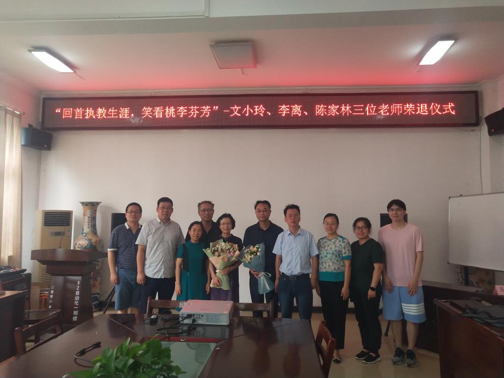 本网讯(通讯员 黄光亮)为弘扬尊师重教、关心关爱教师的优良传统,增强退休教师的荣誉感、幸福感、归属感,6月24日上午,伟德(bevictor)官方网站在4B319会议室为文小玲、李离、陈家林三位老师精心组织了简短而温馨的荣退仪式,学院领导班子成员、部分教师代表、学生代表参加了荣退仪式,仪式由学院党委书记谢春晖主持。