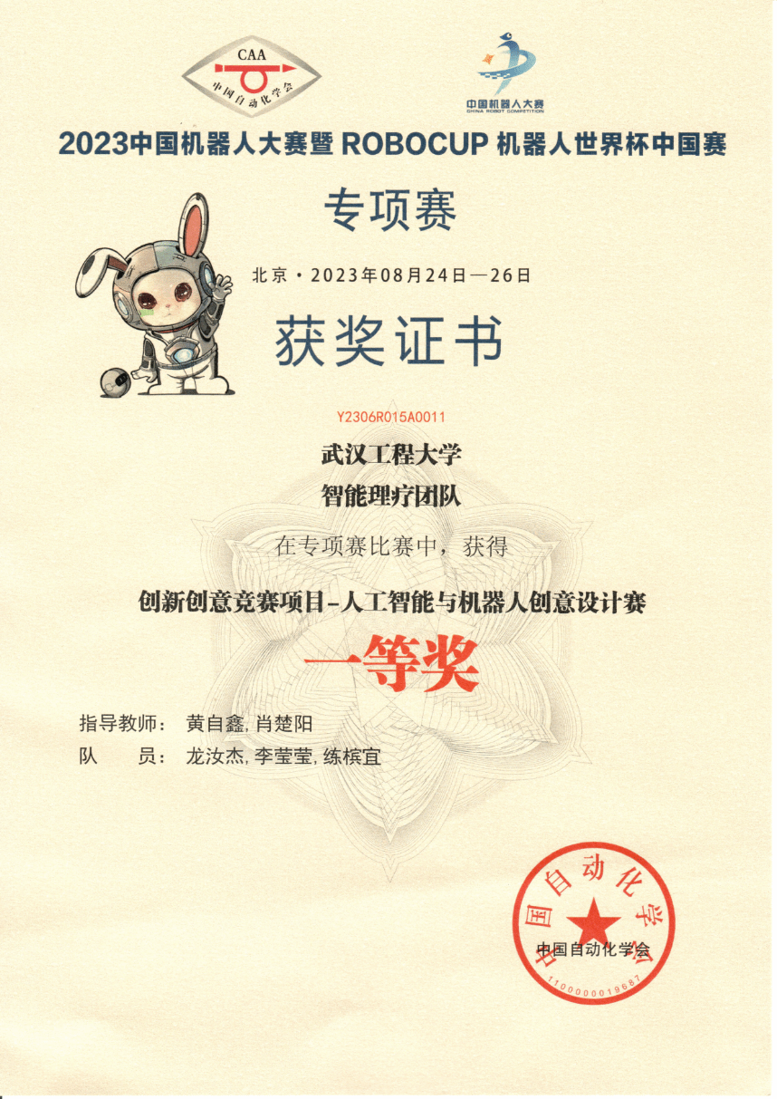 本网讯(通讯员 林梦颖 龙汝杰 李莹莹)由中国自动化学会主办,中国自动化学会机器人竞赛与培训部、中国自动化学会机器人竞赛工作委员会、北京工商大学承办的2023年中国机器人大赛暨RoboCup机器人世界杯中国赛专项赛圆满落幕,我校伟德(bevictor)官方网站学子在本届大赛的创新创意赛项中披荆斩棘,喜获全国一等奖。