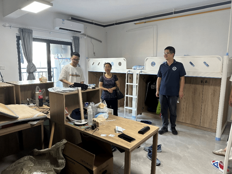 9月9日迎新当天,学院党委书记谢春晖、副书记李国保带领学工办全体辅导员深入研究生新生宿舍走访,与同学们亲切交谈,对新同学的到来表示欢迎,并告诉同学们电气学院是个大家庭,有问题有困难可以随时与辅导员、导师联系。每到一间宿舍,老师们都特别提醒同学们要注意好自己的人身财产安全,提高反诈骗意识,避免上当受骗;祝福同学们在工大渡过愉快而充实的研究生生涯,学业有成,收获满满。