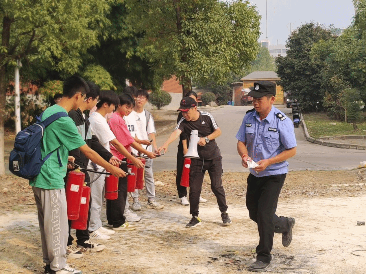 随后,王老师向学生介绍常用灭火器的使用原理以及操作要领,指出在使用的时候务必注意“一提、二拔、三对准、四按压”,对准火源,以达到灭火效果。在保卫处工作人员的指导下,同学们兴致高涨,主动上前轮流动手尝试使用灭火器,通过亲身体会进一步掌握灭火器的使用技巧。