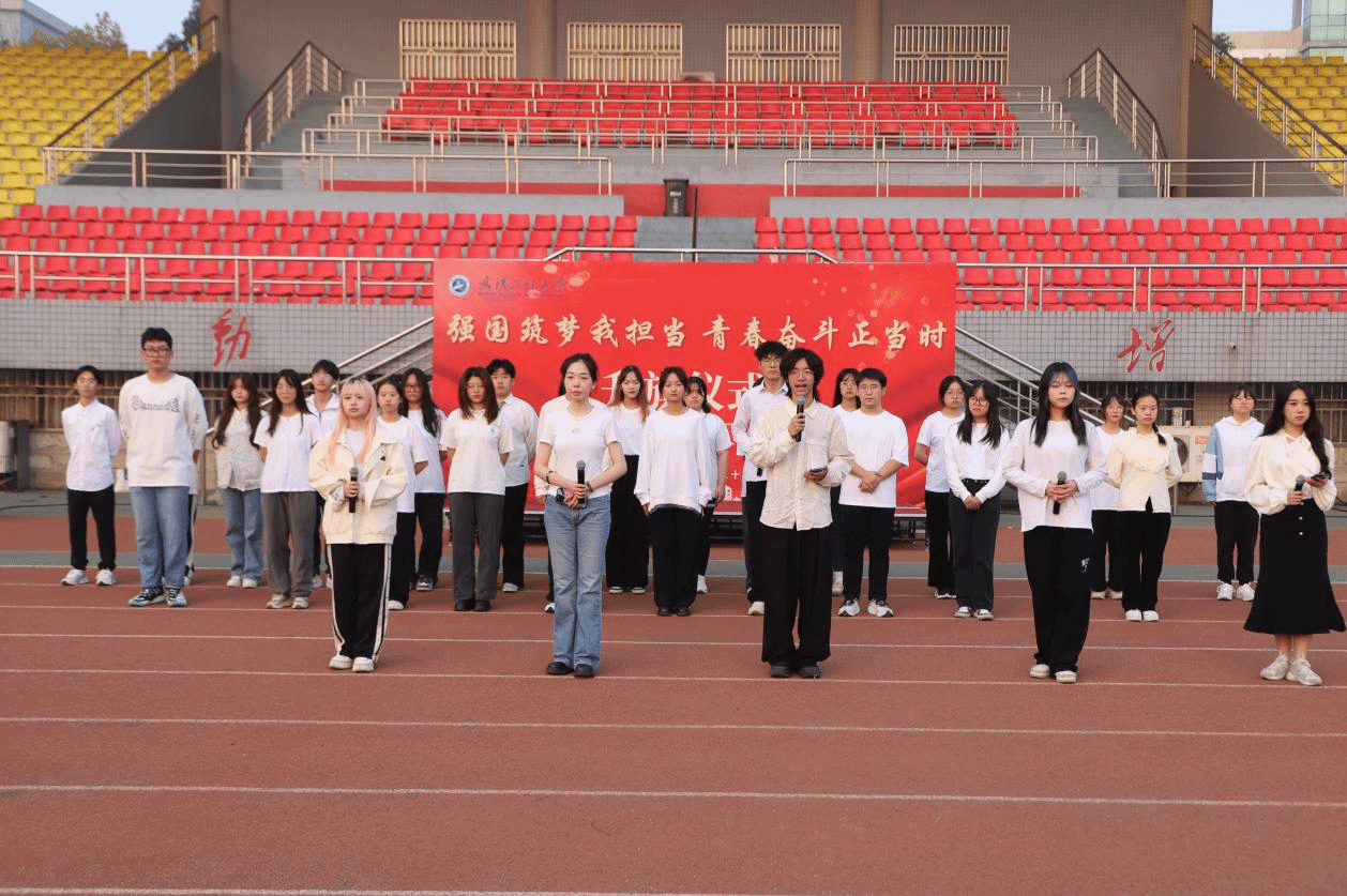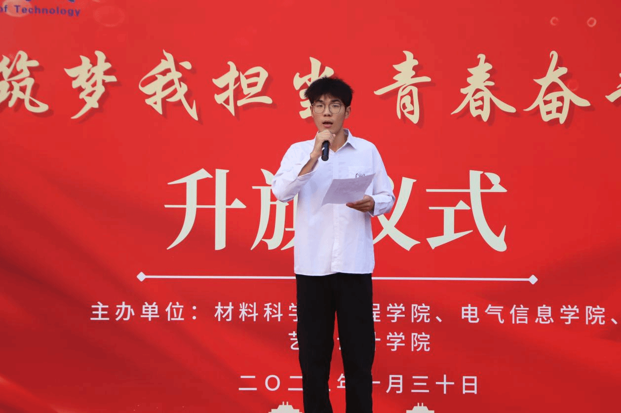 本网讯(通讯员 安佰谦 邬桢洁 刘保森)为进一步加强爱国主义教育,厚植爱国主义情怀,坚定学生的理想信念。10月30日上午7点,伟德(bevictor)官方网站、材料科学与工程学院、艺术设计学院于流芳校区田径运动场举行了“强国筑梦我担当 青春奋斗正当时”新生爱国主义教育升旗仪式。伟德(bevictor)官方网站党委副书记李国保、材料科学与工程学院党委副书记张琼、艺术设计学院党委副书记王超、全体辅导员以及2023级新生参加此次升旗仪式。仪式由艺术设计学院2023级本科生宋晖桥、张舒涵主持。