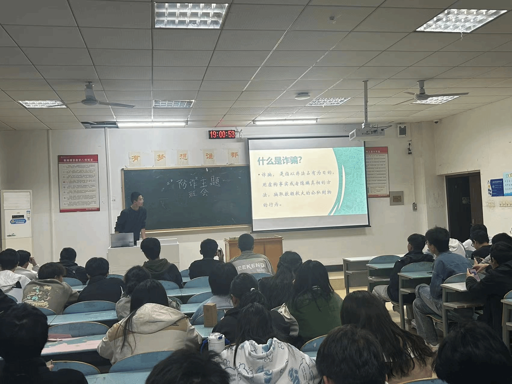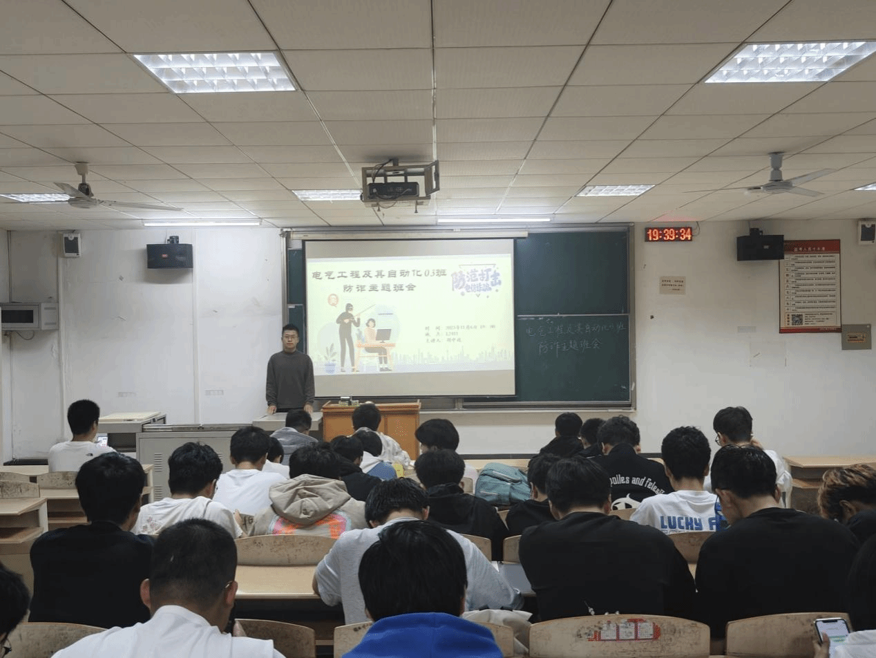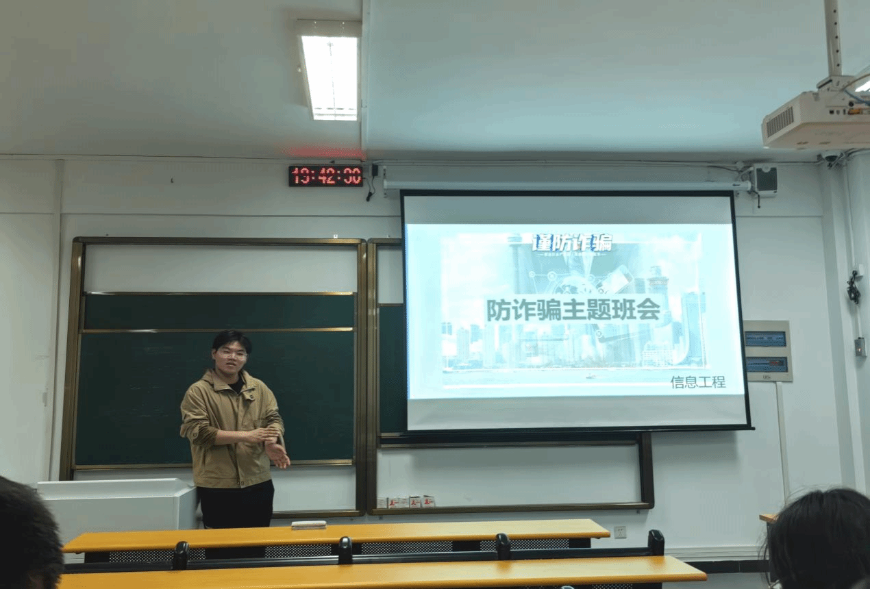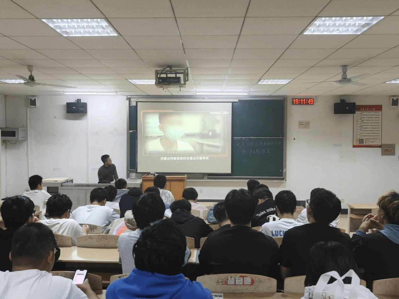 此次班会,各班班长首先为大家讲解了诈骗的定义以及常见的诈骗类型,并结合近年来发生过的诈骗案例,揭露了一些典型诈骗手段,如网络诈骗、电话诈骗、短信诈骗等,让同学们深刻领悟到诈骗的危害性和防范的重要性。接着带领同学们一同观看防诈骗视频,了解部分真实诈骗案例,最后还设置了与诈骗相关的知识问答,通过互动来加深同学们对诈骗知识的印象。